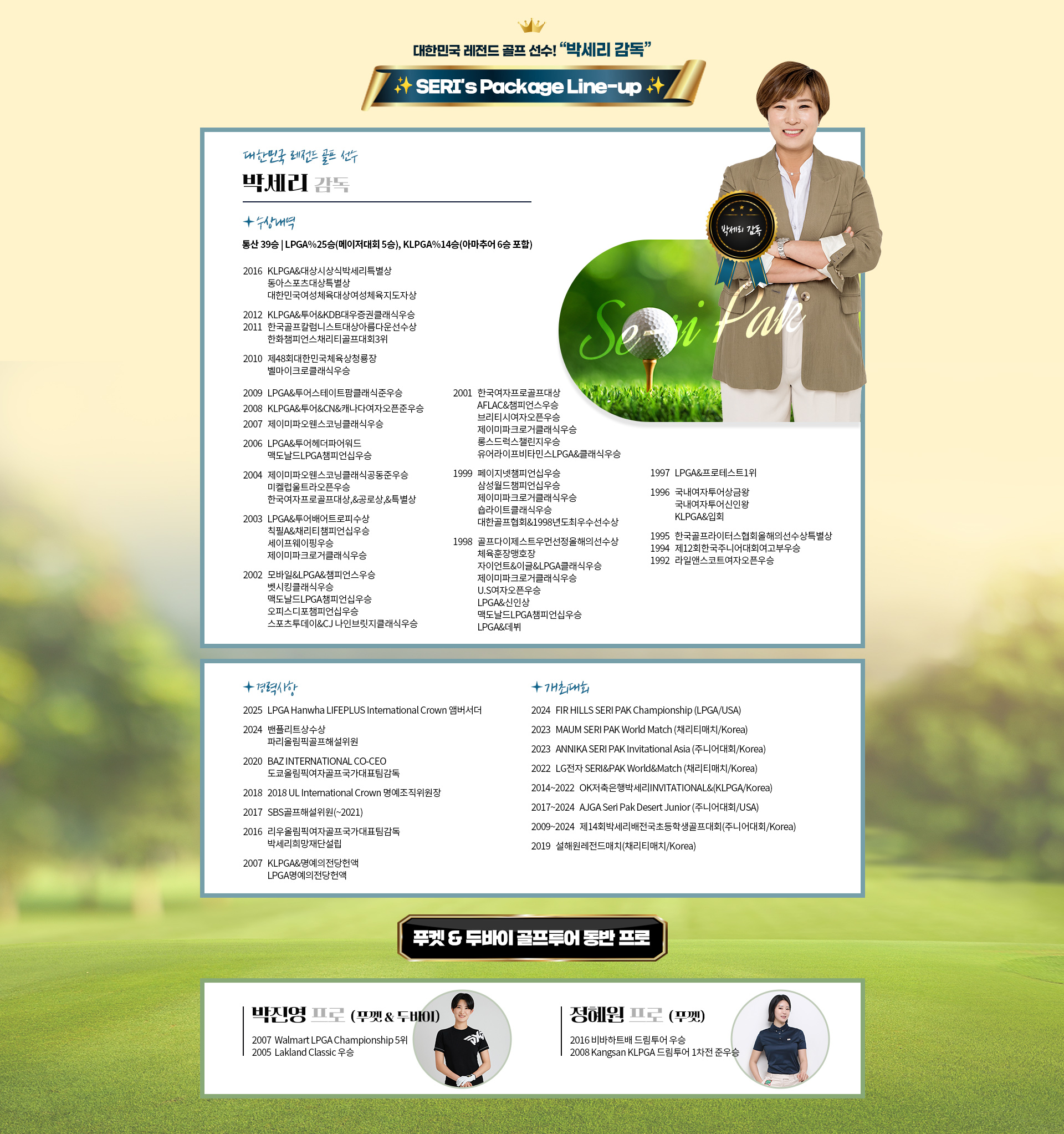 [골프 여제] 박세리와 함께하는 두바이 골프 7일 *SERI’S Golf Package*
